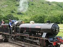 In December 1929, a 4 ft 8+1⁄2 in (1,435 mm) standard gauge 0-6-0 diesel locomotive was obtained to work the Ravenglass-Murthwaite section. It was built by Kerr Stuart (works number 4421) and had a six-cylinder, 90 horsepower (67 kW), McLaren-Benz engine. Transmission was mechanical and final drive was by roller chains. In 1955 it was sold, through a dealer, to the National Coal Board for use at Wingate Grange Colliery, Durham. A new Dorman engine of 90 horsepower (67 kW) was fitted in 1960.[9] It is now preserved at the Foxfield Light Railway,[10] restored to original external condition, and was displayed at Ravenglass in the summer of 2000.