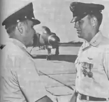 Receiving the Distinguished Service Medal from Air Force Chief of Staff John P. McConnell (left), for services while Commander in Chief, Alaskan Air Command.