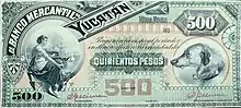 1890 banknote issued by Banco Mercantil de Yucatan, S.A.