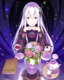 Accompanied by Echidna, Emilia is surrounded with dreamlike memories of her childhood. She is immediately presented with scenes of the Princess Room, her childhood home in the forest, as well as her aunt, Mother Fortuna, who is raising her in her parents' absence. Young Emilia follows a lesser spirit into the nearby village to observe Mother Fortuna, who speaks with Petelgeuse and other witch cultists as they deliver donations of books and clothing. Petelgeuse asks Fortuna about "the seal" and states that Emilia's parents would be cross if anything were to happen to it. Emilia sneaks out of the Princess Room from time to time, continuing to eavesdrop upon Fortuna and Petelgeuse, who repeatedly asks about the seal. Curious about the seal, Emilia asks the lesser spirits to lead her to it and finds a large black door in a snowy forest clearing. Petelgeuse and Fortuna cross paths with Emilia in the forest, cementing a close relationship with each other. Fortuna learns of Emilia's ability to use spiritual arts and Petelgeuse accidentally says Emilia's parents have passed away. Fortuna promises to Emilia that they will talk about her parents someday. As they escort Emilia back to her Princess Room, they are suddenly confronted by the Sin Archbishop of Greed, Regulus Corneus.