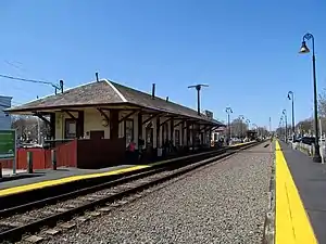 The station was later rebuilt around 1991 with a mini-high platform on the inbound side for accessibility.[6][7] The second track, removed decades earlier, was not rebuilt; the outbound platform was repaired, but a second mini-high platform was not built. Thus, the inbound platform serves trains in both directions. In June 2022, the MBTA indicated plans to add a turnback track at the station at a cost of $1.5–2 million. It would be completed in 2023, allowing service between Reading and Boston to operate on 30-minute headways.[8]