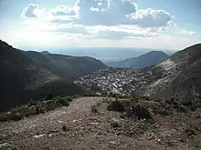 The village of Real de Catorce sits on the side of a mountain at more than 2,743 meters (9,000 ft). It is located in the Sierra de Catorce range, one of the highest plateaus in Mexico, where summits may extend over 10,000 feet (3,000 m). These mountains lie in the arid Mexican plateau, cut off from trade winds of the Gulf of Mexico by the high peaks of the Sierra Madre Oriental.