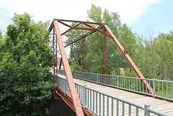 It is a 5-panel, pinned Pratt through-truss bridge with I-beam approach spans. It is 112 feet (34 m) in total length, with the primary span 80 feet (24 m) in length.[2]