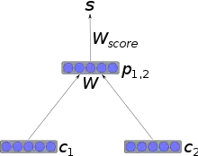 In the most simple architecture, nodes are combined into parents using a weight matrix that is shared across the whole network, and a non-linearity such as tanh. If c1 and c2 are n-dimensional vector representation of nodes, their parent will also be an n-dimensional vector, calculated as