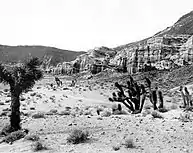 The area was once home to the Kawaiisu people. Some petroglyphs and pictographs are found in the El Paso Mountains and represent ritual sites from ancestors of the Coso people were early indigenous inhabitants of this locale. They created extensive carvings in rock within the El Paso and neighboring mountains of Red Rock Canyon.[2] and conducted considerable trade with other tribes as far as the Chumash on the Pacific coast.[3]