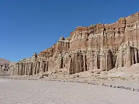Red Rock Canyon State Park is a state park in the U.S. state of California which features scenic desert cliffs, buttes and spectacular rock formations. The park consists of approximately 27,000 acres (110 km2) within the Mojave Sector of the Tehachapi District of the California State Park System, and is located along State Highway 14 in Kern County, about 80 miles (129 km) east of Bakersfield and 25 miles (40 km) north of Mojave, where the southernmost tip of the Sierra Nevada converges with the El Paso Mountains.