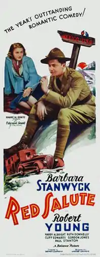 Red Salute (also released as Arms and the Girl) is a 1935 American comedy film directed by Sidney Lanfield and starring Barbara Stanwyck and Robert Young. Based on a story by Humphrey Pearson, the film is about the daughter of a US Army general who becomes involved with a suspected communist agitator.