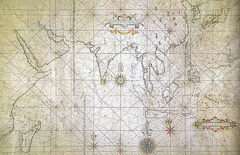 Japanese portolan sailing map, depicting the Indian Ocean and the East Asian coast, early 17th century.