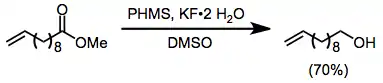 Esters may be reduced to alcohols under conditions of nucleophilic activation with caesium or potassium fluoride.[14]