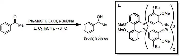 12. Lipshutz, Bruce H.; Noson, Kevin; Chrisman, Will; Lower, Asher (July 2003). "Asymmetric Hydrosilylation of Aryl Ketones Catalyzed by Copper Hydride Complexed by Nonracemic Biphenyl Bis - phosphine Ligands". Journal of the American Chemical Society. 125 (29): 8779–8789. doi:10.1021/ja021391f. PMID 12862472.