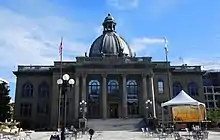 In an attempt to revitalize Redwood City's downtown, city officials decided to consider development. In February 1999, the San Mateo County History Museum opened inside the old San Mateo County Courthouse in downtown Redwood City.[14] The courthouse had been built in 1910 and in the late '30s an addition was built in front of the original structure, obscuring the view. As part of the revitalization, this addition was torn down and replaced with a large courtyard flanked by water fountains on either side, leading to the main steps of the courthouse. The courthouse's glass dome is lit at night and changes colors every 11 seconds.