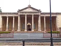 For the time of the building, the neoclassical style may seem late, but it has the typology of a classic tetrastyle temple of compound order, which is well executed. In the interior of the building there are two patios with peristyles of slender columns,[75] representative of the aguascalentense architecture of the time.[76]