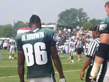 On December 16, 2007, during a game in Dallas against the rival Cowboys, Brown, after running to catch an overthrown pass, ran out of bounds and jumped in the giant Salvation Army bucket in Texas Stadium, saying he couldn't slow down in time to stop before it. He caught the lone touchdown in the Eagles 10–6 win that day.[3]