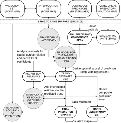 - Geostatistical mapping: Regression-kriging allows for use of hybrid geostatistical techniques to model e.g. spatial distribution of soil properties.