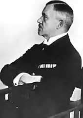 A strict disciplinarian, Scheer was popularly known in the Navy as the "man with the iron mask" due to his severe appearance.[1] In 1919, Scheer wrote his memoirs; a year later they were translated and published in English. He wrote his autobiography in 1925. Scheer died at Marktredwitz. He is buried in the municipal cemetery at Weimar. The admiral was commemorated in the renascent Kriegsmarine by the heavy cruiser Admiral Scheer, built in the 1930s.