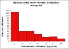 Figure 2. Preston plot of beetles sampled from the river Thames showing a strong right-skew.[2][3]