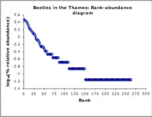 Figure 3. Whittaker plot of beetles sampled from the river Thames showing a slight "s"-shape.[2][3]