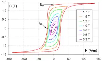 - ↑ Strictly speaking, it is still in the Earth's field, but that has little effect on the remanence of a hard magnet.