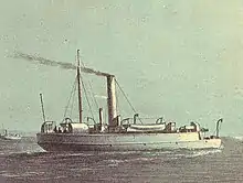 Between 1875 and 1880 China purchased 13 flat-iron gunboats from Britain and built another (Tiong Sing) at Shanghai.[10] After the two Jiansheng class, the British-built boats were given names from the Greek alphabet, from Alpha through to Lambda, thus becoming known as the "alphabetical" gunboats. Although quickly given Chinese names, the class names seem to have stuck. A further pseudo-Rendel gunboat (Hoi Tung Hung) was built locally to the lines of the "alphabetical" flat-irons, but constructed from wood sheathed in iron. Fusheng and Jiansheng were lost in the Battle of Fuzhou in 1884 at the beginning of the Sino-French War.[11] Four Chinese Rendel gunboats also took part in the Battle of the Yalu River against the Japanese in 1894.[12] Eight Chinese flat-iron gunboats were sunk or captured by Japan at the battle of Weihaiwei in 1895.[5]
