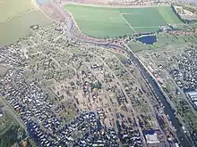 Ex-residents of the demolished neighbourhoods along the Avon River / Ōtākaro are broadly in favor of turning their old homes into a park,[3] with organisations such as the Avon-Ōtākaro Network lobbying to "[change] Christchurch's Avon River red zone from a place of trauma and heartache to a land of fun and natural beauty."[27][28] So, the government’s long-term earthquake recovery organization, Regenerate Christchurch, developed the Ōtākaro/Avon River Corridor Regeneration Plan to make the Avon River red zone into a large park stretching from downtown Christchurch to the Avon Heathcote Estuary by the ocean. Such a park, at 602 hectares (6.02 km2), will be nearly four times the size of Christchurch's Hagley Park,[29] and Regenerate Christchurch considers this vast new urban open space a unique opportunity to improve the city’s parkland and natural environment. Researchers at Lincoln University estimate "the total annual value of benefits to Christchurch residents, savings in public health costs deriving from a recreational reserve and the value of ecosystem services in the ARRRZ [Avon River Residential Red Zone] to be approximately $94.1 million/year."[30] The plan is intended to adapt to rising sea levels which are expected to flood part of the Ōtākaro/Avon River Corridor. The plans also acknowledge the existing Māori heritage in the area of Horseshoe Lake, an old oxbow lake of the Avon River / Ōtākaro, where there was once a Ngāi Tahu settlement. The plan calls for educational institutions that preserve and spread Māori culture.[31] The plan was approved on 23 August 2019.[32]