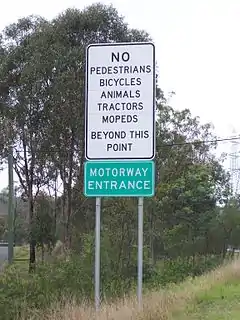 Australian Motorway Entrance and restriction signs