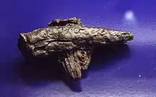 The title 'The Settlement Exhibition Reykjavík 871±2' was chosen for the exhibition: a layer of tephra was deposited around 871 ad from an eruption in the Torfajökull area, about 400 km to the east. The layer, which was deposited all over Iceland, had been dated to 871, with a possible range of error of two years either way. The layer can be dated with this degree of accuracy by reference to ice layers drilled from the Greenland Glacier, as the tephra was also deposited there. The tephra layer has proved a boon to archaeologists, and it plays a crucial role in dating finds from the early years of Reykjavík history. The title of the exhibition is intended to underline the scientific approach which has been applied.[2]
