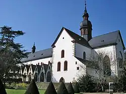 Since the Verona donation in 983, the Rheingau belonged to the archbishopric of Mainz. Legend has it that Charlemagne let the first vineyards be planted in the region, close to present-day Schloss Johannisberg.[2] However finds like a Roman origin grapevine cutting knife point to even earlier cultivation. Better documented is the early influence of the church on Rheingau winemaking, which was controlled from Eberbach Abbey. Augustinians and Benedictines are known to have inhabited the area of the later abbey from 1116, and in 1135 the Cistercians arrived, sent out from Clairvaux. Legend has it that the Cistercians, which are also credited with having founded the wine industry in Burgundy, brought Pinot noir with them to Rheingau, although the earliest record of the grape variety in Rheingau is from 1470.[3] The slopes down from the Taunus mountains belonging to Eberbach Abbey were planted as vineyards in the 12th century, and early in the 13th century the vineyards had reached their present area. In medieval times, more red than white wine was produced, usually as Gemischter Satz, i.e. the vineyards were planted with mixed varieties which were vinified together.