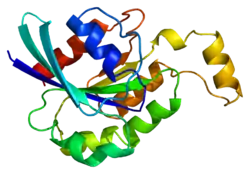 RhoC (Ras homolog gene family, member C) is a small (~21 kDa) signaling G protein (more specifically a GTPase), and is a member of the Rac subfamily of the family Rho family of GTPases.[5] It is encoded by the gene RHOC.[6]