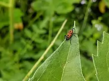 Cocklebur Weevil on a leaf in an Iowa garden