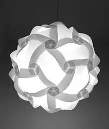Danish designer Holger Strøm used the rhombic triacontahedron as a basis for the design of his buildable lamp IQ-light (IQ for "Interlocking Quadrilaterals").
