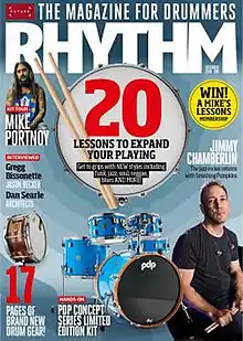 Rhythm celebrated its 25th anniversary in its September 2010 issue.[4] The issue included birthday messages from drummers including Nick Mason, Chad Smith, Joey Jordison, Mike Portnoy, Terry Bozzio, Stewart Copeland, Vinnie Colaiuta, Neil Peart and Nicko McBrain.