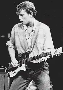 Ricky Helton Wilson (March 19, 1953 – October 12, 1985)[1] was an American musician best known as the original guitarist and founding member of rock band the B-52s. Born in Athens, Georgia, Wilson was the brother of fellow member Cindy Wilson. The B-52s were founded in 1976, when Ricky, Cindy, Kate Pierson, Keith Strickland and Fred Schneider shared a tropical flaming volcano drink at a Chinese restaurant and, after an impromptu music session at the home of their friend Owen Scott III, played for the first time at a Valentine's Day party for friends.[2] Wilson's unusual guitar tunings were a large contribution to the band's quirky sound.[3]