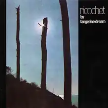 Ricochet is the seventh major release and first live album by the German electronic music group Tangerine Dream. It was released, on the Virgin label, in 1975. It consists of two side-long compositions mixed from studio recordings and the UK portion of their August–October 1975 European Tour. The sound of the album is similar to that of the group's other "Virgin Years" releases, relying heavily on synthesizers and sequencers to produce a dense, ambient soundscape, but is much more energetic than their previous works. Ricochet uses more percussion and electric guitar than its predecessors Phaedra and Rubycon, and borders on electronic rock. The main innovation on the album is the use of complex, multi-layered rhythms, foreshadowing the band's own direction in the 1980s and trance music and similar genres of electronic dance music.