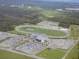 The racetrack at Rideau Carleton is a five-eighths mile oval with a track speed rating[lower-alpha 1] of 1:57.4, about average for tracks of the same dimensions.[8] In 2017, the track had 91 live race dates scheduled; every Sunday evening except Christmas Eve plus Thursday evenings from April through October.[9] It is open year-round for off-track betting and has simulcast facilities for betting on thoroughbred and standardbred racing at other racetracks.