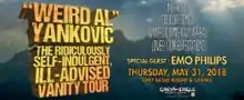 The Ridiculously Self-Indulgent, Ill-Advised Vanity Tour was a concert tour performed by American musician and satirist "Weird Al" Yankovic.[1] Intended to be a more intimate and less stylized production compared to his previous concert tours, the Vanity Tour focused on Yankovic's older material and original songs. The 76-date North American tour was announced in October 2017, and included 68 shows in the United States and eight shows in Canada. Following the conclusion of the tour, recordings of the entire tour were released on Stitcher Premium.