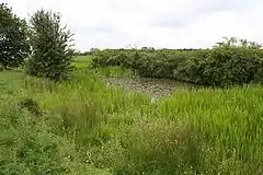 The River Weaver runs north–south through the west of the civil parish and the River Gowy runs east–west along part of its northern border. Both rivers are close to their sources in the Peckforton Hills, which rise to the north west of Ridley.[9] There is a low hill in the east of the civil parish, with a high point of 127 m at SJ567539, at the north part of Chesterton Wood. A mast and a covered reservoir are located on the top of the hill, and a trig point stands at SJ566542, around 100 metres north of the reservoir, at an elevation of 125 metres. The ground slopes gently downwards towards the Weaver in the west of the civil parish, with a low point of around 90 metres.[9]