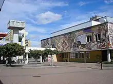 The Rieth is connected to the Erfurt city centre by Erfurt Stadtbahn tram lines 1 and 6. The name Rieth frequently appears in Thuringia as a component of place names. These are river floodplains reclaimed in the Middle Ages, which had previously become marshy and had been drained. Today's Rieth district is also located in such a floodplain between the Gera River in the west and the river Schmale Gera in the east. The Rieth was the first GDR housing estate with a complex centre in its centre, but the Johannesplatz was the first prefabricated housing estate to be built in Erfurt in 1965.