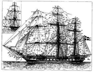 Rigging of a sailing frigate