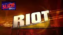 Riot is a 2014 American game show comedy television series from Fox Broadcasting Company and based upon the Australian Slide Show television series,[1] itself based upon the Arthur-created French program Vendredi tout est permis ("On Fridays, Anything Goes with Arthur", aka Anything Goes), where two teams of celebrities competed in a number of challenges and games, including one on a huge set that tilts at 22½ degrees.[2][3] Hosted by Rove McManus, weekly episode "guest" captains include a rotating set of actors, with Andy Buckley and Steve Carell "captaining" the premiere episode.[4][5] Riot was canceled by Fox on June 12, 2014.[6]