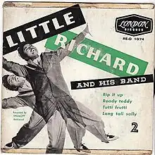 "Rip It Up" is a rock and roll song written by Robert Blackwell and John Marascalco. In June 1956, Specialty Records released it as a single by Little Richard with "Ready Teddy" as the B-side. The song reached the top position on the Billboard Rhythm & Blues Records chart as well as number 17 on the magazine's broader Billboard Hot 100.[1] The version peaked at number 30 in the UK Singles Chart.[2]