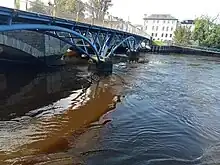 Flooding around the southern shores of Lough Neagh continued to be a problem, and in 1882 the chairman of Portadown Town Commissioners suggested that Alexander Nimmo's scheme should be revived. The Upper Bann would be made much deeper near the lough, so that its flow could be reversed, and the amount of water entering the lough reduced correspondingly. The proposal was no better received than when Nimmo had originally made it.[29] Both the Monck Commission, which sat in the early 1880s, and an enquiry into the Board of Works held in 1887, suggested that for the benefit of flood relief, the navigation should be abandoned, and that the three Trusts were counter-productive. No action was taken, and when the President of the Institution of Civil Engineers, Sir Alexander Binnie, was asked for his advice in 1906, he came to a similar conclusion. He suggested that a canalised river, which in winter had a flow of between 188 and 376 cubic metres per second (400,000 and 800,000 cu ft/min) was never going to succeed. Again his advice was ignored, as the navigation works were still relatively new. The counties continued to fund the annual deficit.[30]