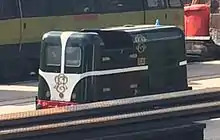 NG 39 was the second Muir-Hill Fordson tractor to be bought by the railway for quarry traffic. It arrived in 1929, three years after the original tractor, and was rebuilt as a steam-outline Diesel 0-4-4 using the front bogie off Sans Pareil in 1933 for occasional use on passenger trains.[5] In this guise it was known as the Passenger Tractor and in the 1970s nicknamed Pretender.