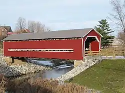 - 5.6 kilometres (3.5 mi) south-west, up to the Chemin de Warwick bridge, located south-east of the village of Warwick;