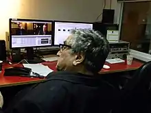 Yaakov Ahimeir working on an interview with Mike Huckabee for Roim Olam