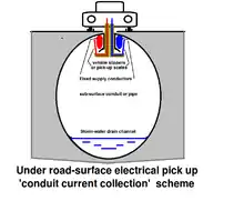 4. Where an external electric supply is provided, this is typically with overhead conductors or above-ground rails or (rarely) sub-surface electro-magnets.