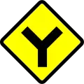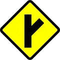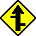 Warning signs warn of possible dangers or unusual conditions ahead and alert motorists on the hazards to expect. Warning signs in Indonesia used to closely follow US MUTCD and Japanese diamond-shaped with yellow background and black-and-yellow outline but recently they change it to full black outline.