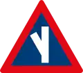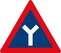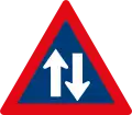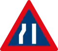 Roadway narrows from both sides ahead