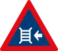 Roadway narrows from the right side ahead