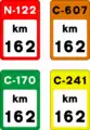 Route number signs are intended to identify the roads by their number, made up of figures, letters or a combination of both, or by their name. They are made up of this number or this name framed in a rectangle or a shield.