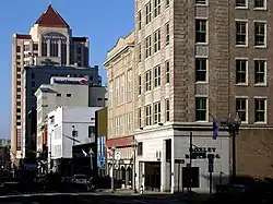 The Roanoke Downtown Historic District is a national historic district located in the Downtown Roanoke area of Roanoke, Virginia. It encompasses 122 contributing buildings. It includes a variety of commercial, institutional, social, and governmental buildings and structures from the late 19th century to the mid-20th century. Notable buildings include the Roanoke City Public Library, the YMCA Central Branch Building, First Christian Church (1925), the Central Church of the Brethren (1924), Tomnes Cawley Funeral Home (1928), Thomas B. Mason Building (1961), Peerless Candy Co. (c. 1916), City Hall / Municipal Building (1915), Roanoke Times Building (1892), Anchor Building / Shenandoah Building (1910), Greene Memorial Methodist Church (1890), and United States Post Office and Courthouse (1930). Located in the district are the separately listed Patrick Henry Hotel, Boxley Building, Campbell Avenue Complex Historic District, Colonial National Bank, and First National Bank.[3][4][5]